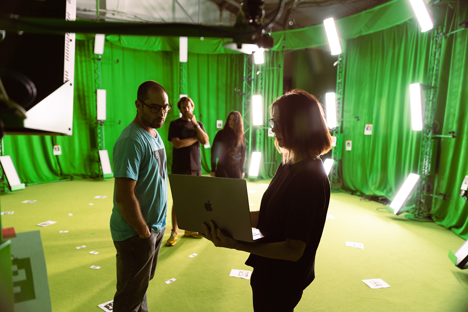 For this collaboration, we reimagined the 4D Gaussian Splatting setup as an artistic tool rather than just a research experiment. We played extensively with lighting to capture the dark, industrial Berlin aesthetic Halina envisioned, and after several tests, we managed to turn our dancer into a living, fluid volume of light and motion. The virtual environment was recreated in Unreal Engine by our visual artist Freny Antony, who also developed the VFX elements and dynamic camera movements that shaped the final piece.